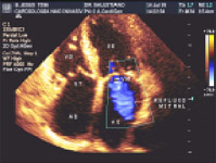 3.1. Ecocardiograma com doppler (Pulsado e Contínuo) O ecocardiograma surgiu no cenário clínico a partir da década de 70 e permite a avaliação da estrutura anatômica e funcional do coração. Entretanto, somente com a incorporação das técnicas de Doppler (pulsado e contínuo), no início dos anos 80, foi possível fazer uma análise qualitativa do fluxo sangüíneo e das pressões intracardíacas (refluxos, shunts, gradientes etc), tornando esse método indispensável para uma avaliação completa do coração. 3.2 Ecocardiograma com Doppler Colorido 3.3 Ecocardiograma Fetal com Doppler Colorido 3.4 Ecocardiograma Transesofágico Entre suas principais indicações clínicas podem ser mencionados: 3.5 Ecocardiograma de Estresse Podemos ressaltar as principais indicações do Estresse eco: A Ecocardiografia de Estresse está contraindicada nas seguintes situações: |